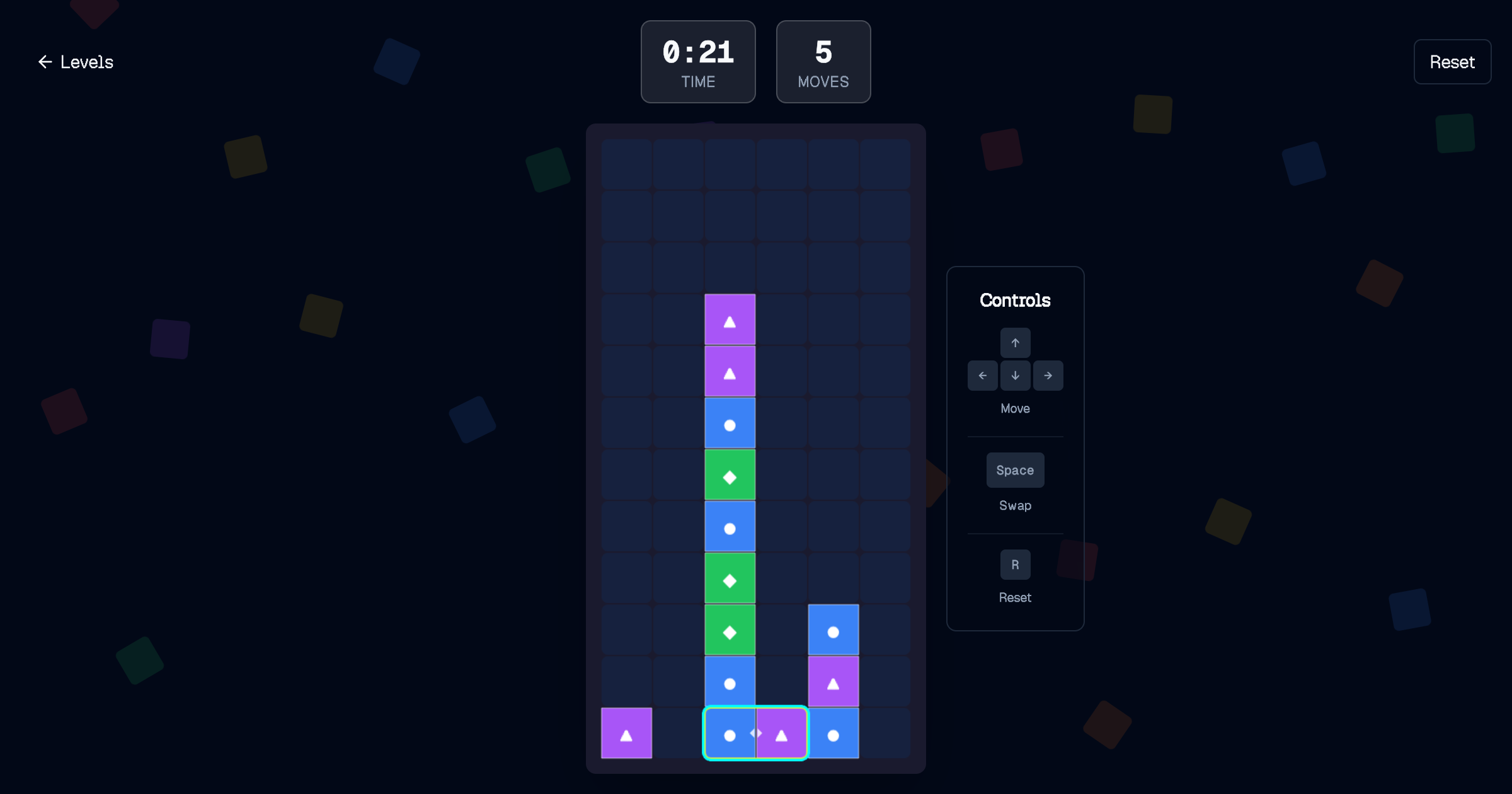 A block-swapping puzzle game inspired by Panel de Pon / Tetris Attack. Daily challenges with move limits, practice mode, stats and a level editor. Built with Phaser 3, React, tRPC and PostgreSQL.